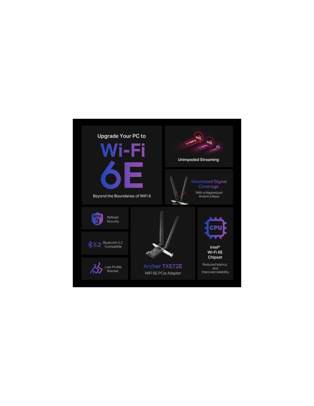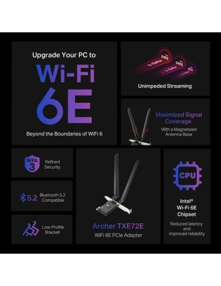 Carte pci express wifi TXE72E AXE5400 wifi 6E et Bluetooth 5.3 Archer TXE72E